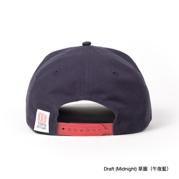 - 可調節式後扣設計 (Adjustable snap back closure):方便快速調整頭圍尺寸。